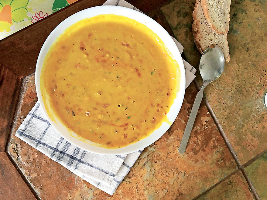 Polévka z červených paprik s dýní a rajčaty je plná přírodní sladkosti a intenzivní chuti. Opečená zelenina spolu se slunečnicovými semínky přidává jemnou křupavost a aromatický rozměr, který z ní činí ideální sytý oběd či večeři.