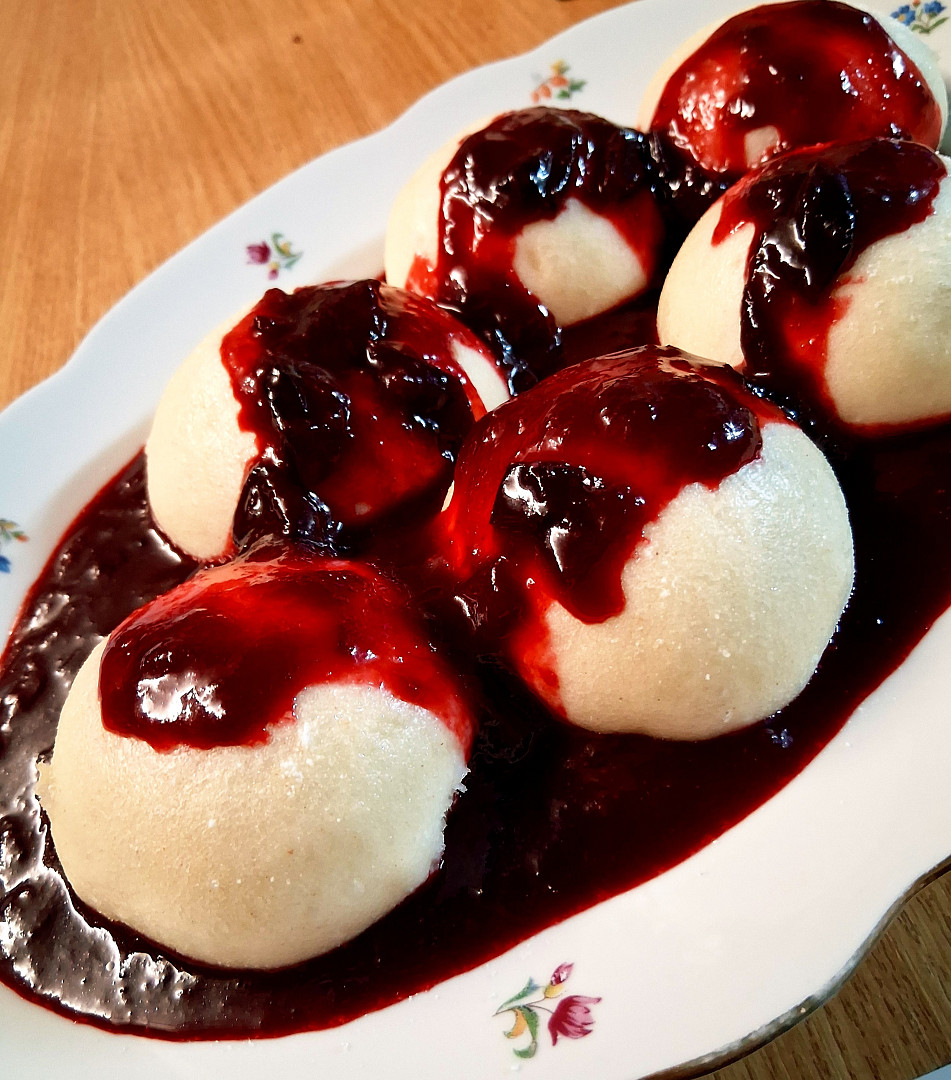 Domů - Recepty - Kynuté knedlíky s mirabelkovou omáčkou