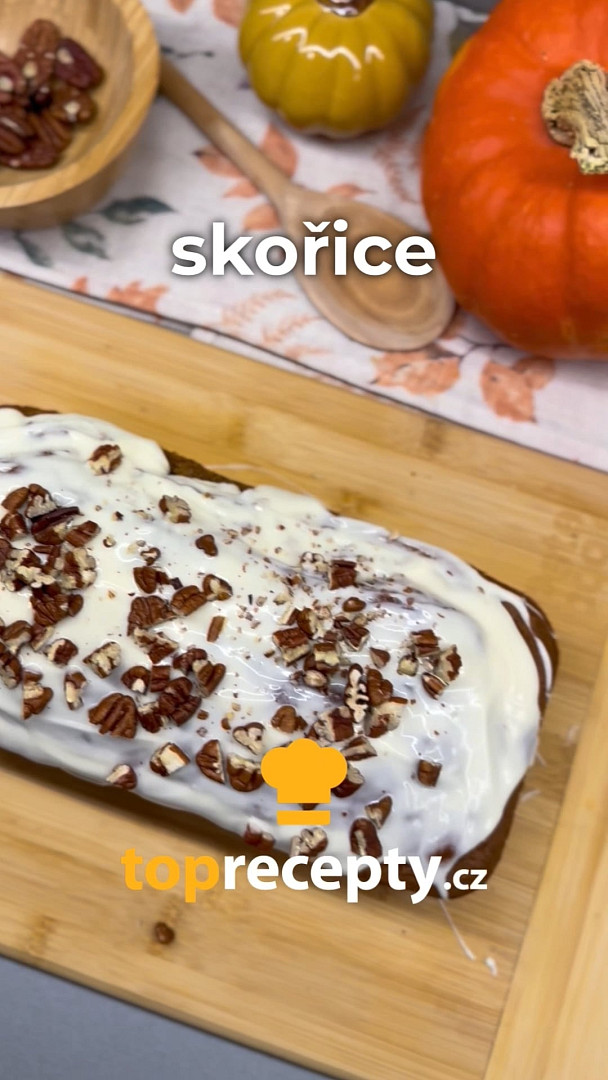 Dýňový chlebíček je nadýchaný, vláčný a provoněný skořicí. Díky dýňovému pyré a javorovému sirupu má jemně nasládlou chuť a pekanové ořechy mu dodají příjemnou křupavost. Skvěle chutná samotný i s cukrovou polevou.
