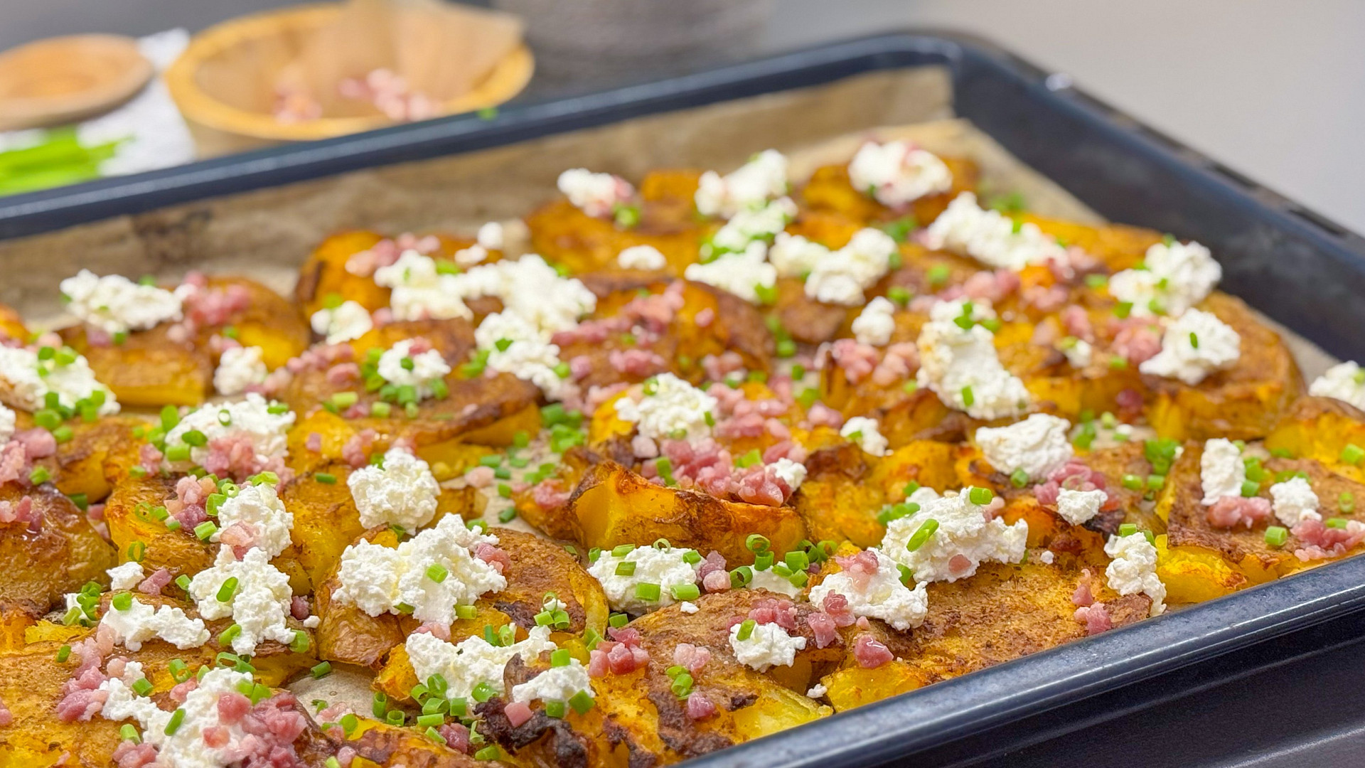 Zbouchnuté brambory jsou křupavé, voňavé a skvěle ladí s jemnou Lučinou, čerstvou pažitkou i slaninou opečenou dozlatova. Jakmile je jednou ochutnáte, už na ně nedáte dopustit.