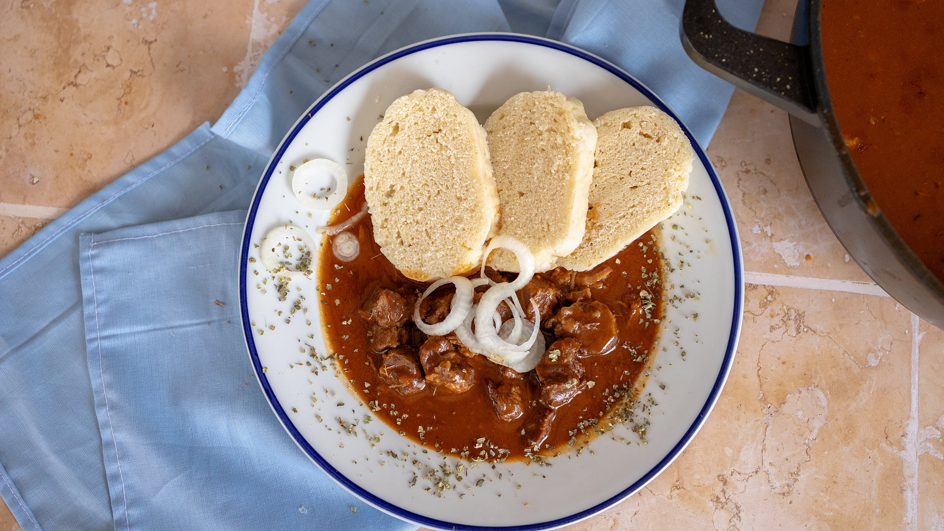 Jednotnému vaření v restauracích, hospodách a jídelnách se nevyhnul ani populární guláš. Podle státní normy ČSN se na jeho přípravu používalo hovězí, vepřové nebo skopové maso. My jsme pro vás vybrali tradiční hospodský guláš z hovězí kližky a věříme, že vám bude chutnat.