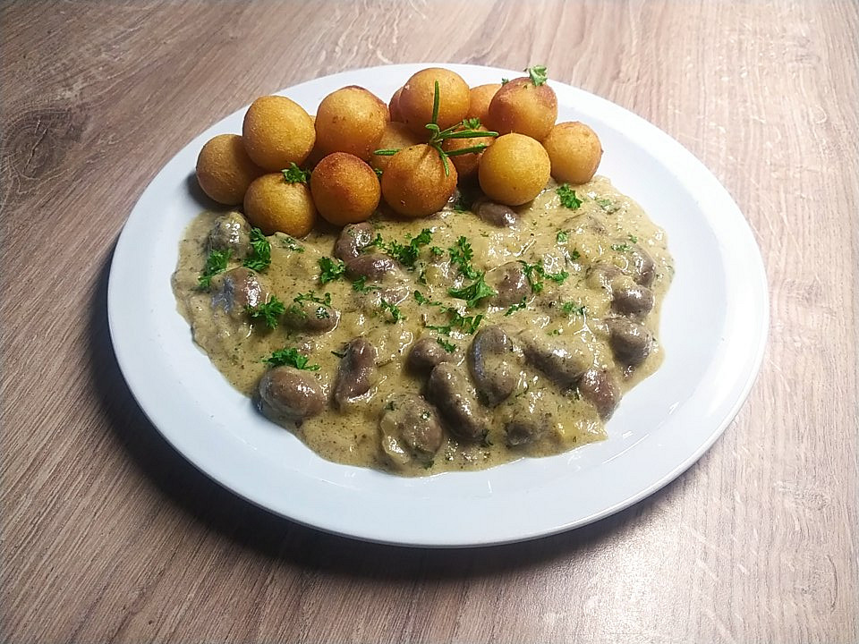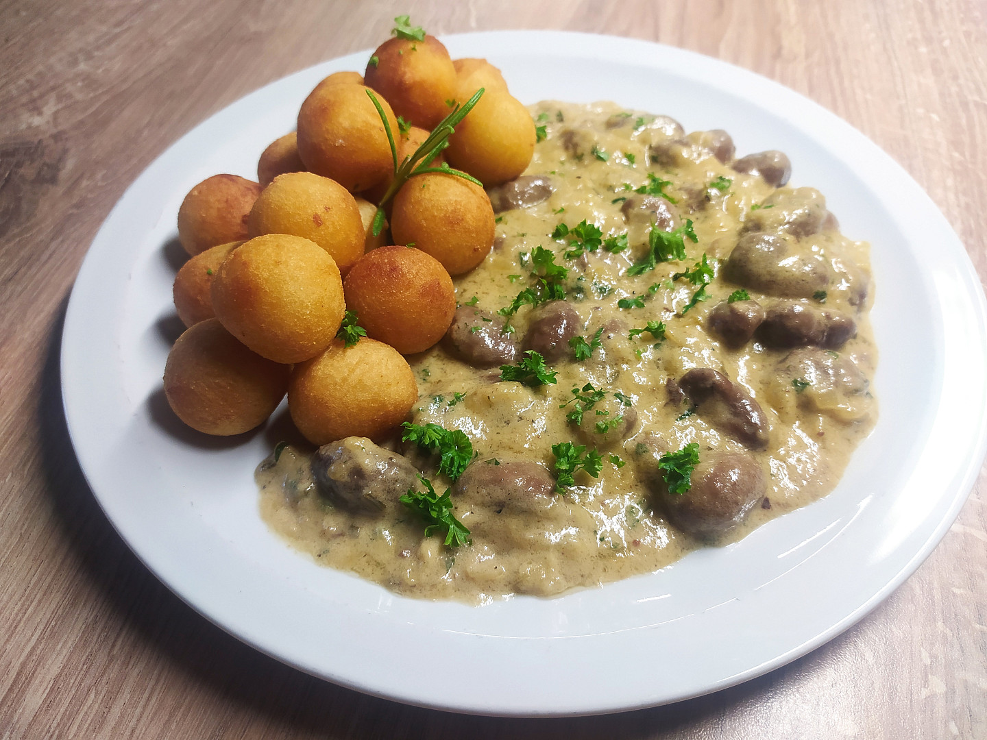 Králičí ledvinky v rozmarýnovo-smetanové omáčce