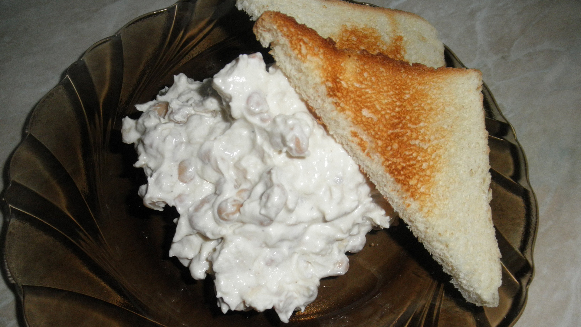 Nenáročný, výživný a chuťově výrazný salátek najdeme v tomto receptu. Uvařené drobné bílé fazolky smícháme s krémovým sýrem, kousky kuřecího masa a dochutíme štiplavým, čerstvě strouhaným křenem. Podáváme na opečeném toustu.