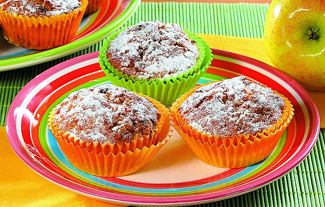 Mrkvovo-jablečné dortíky jsou nádherně vláčné a voňavé po skořici, jablkách a kokosu. Dortíky jsou příjemně nasládlé, plné rozinek a potěší i ty nejmenší strávníky. Skvěle se hodí nejen ke kávě.