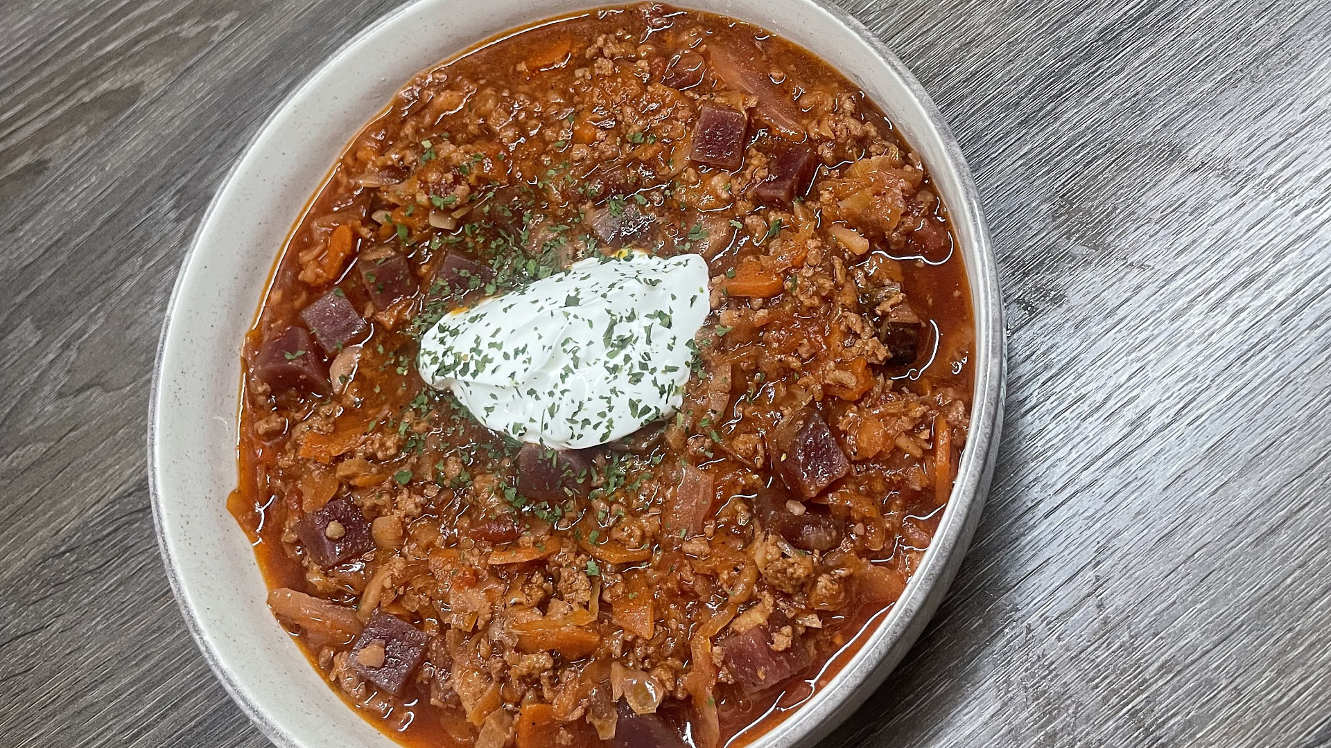 Boršč je tradiční polévka východoevropské kuchyně, která se připravuje v mnoha obměnách. Tato varianta s mletým masem a restovanou slaninou vyniká výraznou chutí červené řepy a díky zelenině je nejen zdravá, ale také příjemně zasytí.