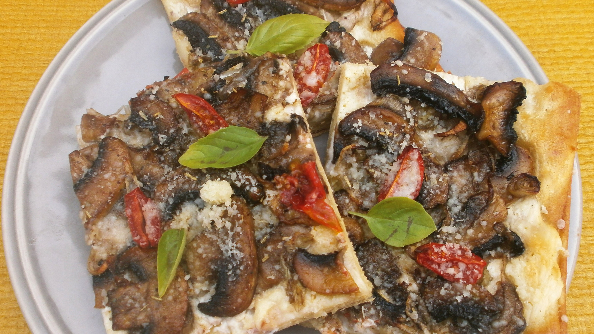 Slaný koláč je rychlou záchranou při nečekané návštěvě, nebo když vás jen honí mlsná. Nekynuté jogurtové těsto stačí potřít pomazánkovým máslem, ozdobit plátky žampionů a cherry rajčátek, a nakonec zasypat jemnou vrstvou parmazánu.