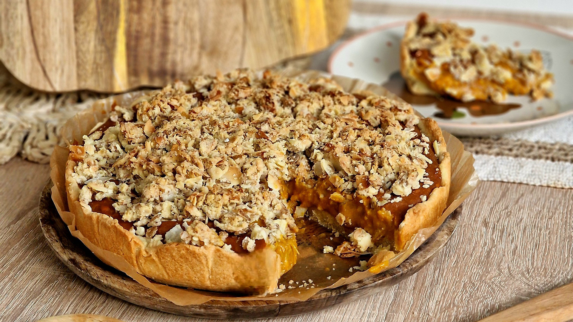 Když za oknem šustí listí a déšť jemně bubnuje na parapet, nastává ta pravá chvíle na voňavý dýňový koláč. Tento recept nabízí poctivé linecké těsto, sladkou dýňovo-jablečnou náplň a navrch ještě křupavou mandlovou drobenku.