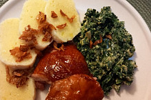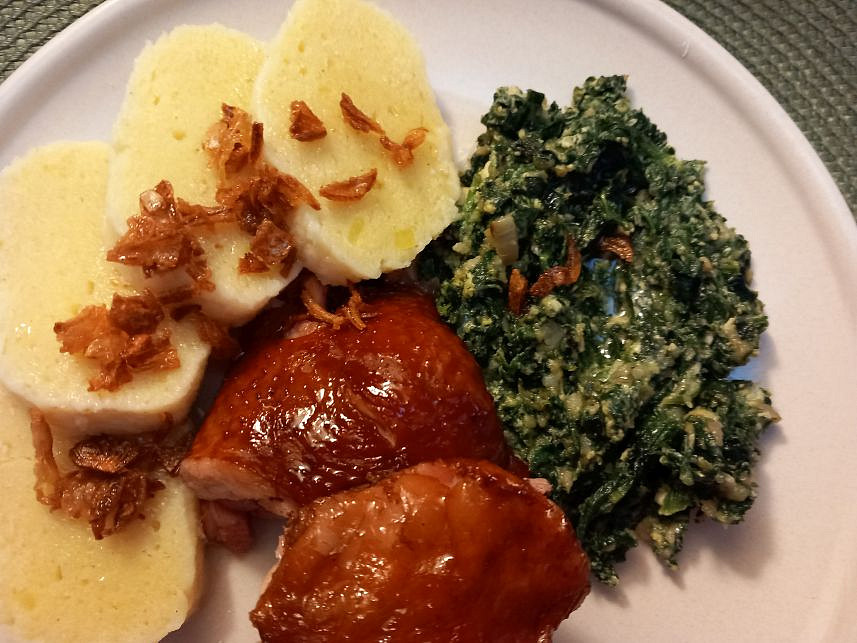 Uzená kuřecí stehna s baby špenátem