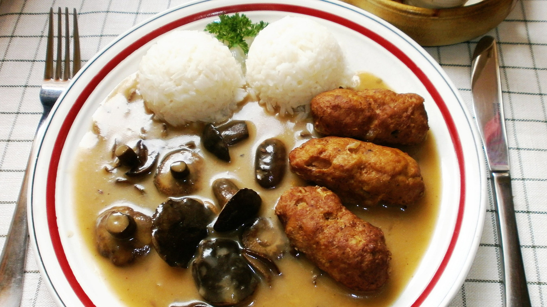 Šťavnaté masové válečky tentokrát připravíme ze slepičího masa. To umeleme se slaninou, okořeníme a vytvarujeme. Válečky pak povaříme v základu na houbovou omáčku, kterou na závěr zjemní lahodná smetana.