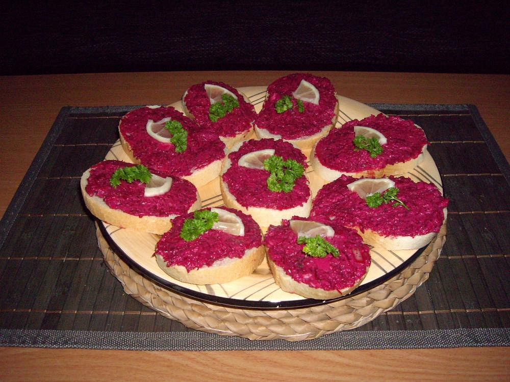 Pomazánka z červené řepy se hodí pro každou příležitost. Můžete ji připravit nejen k večeři, ale také jako pohoštění pro návštěvu. Postačí pouze uvařit řepu a vajíčka, nastrouhat je a smíchat s ostatními ingrediencemi. Pomazánku mažeme na plátek veky a zdobíme petrželkou a kouskem citronu.