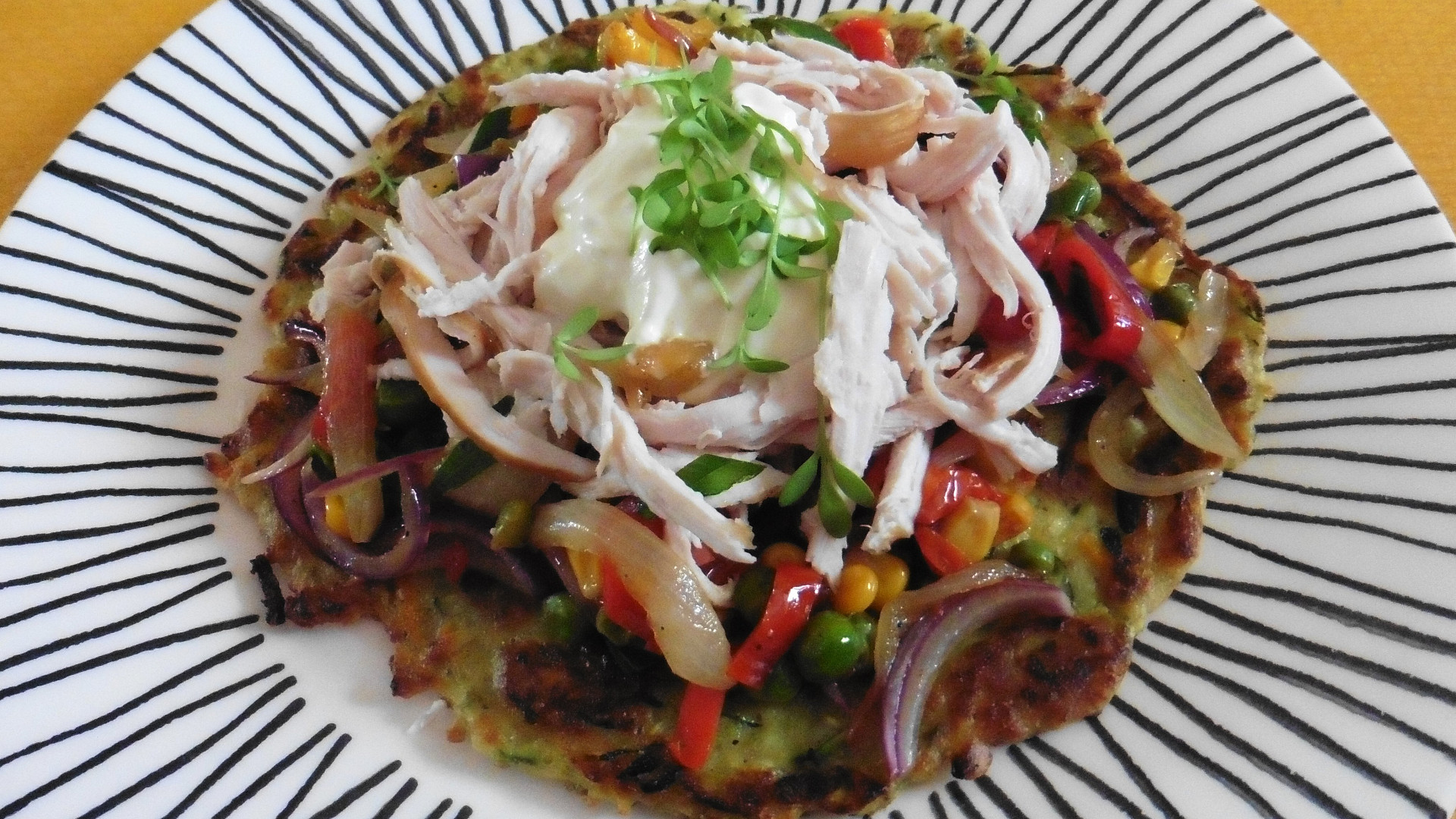 Cuketový bramborák s kuřecím masem a zeleninou