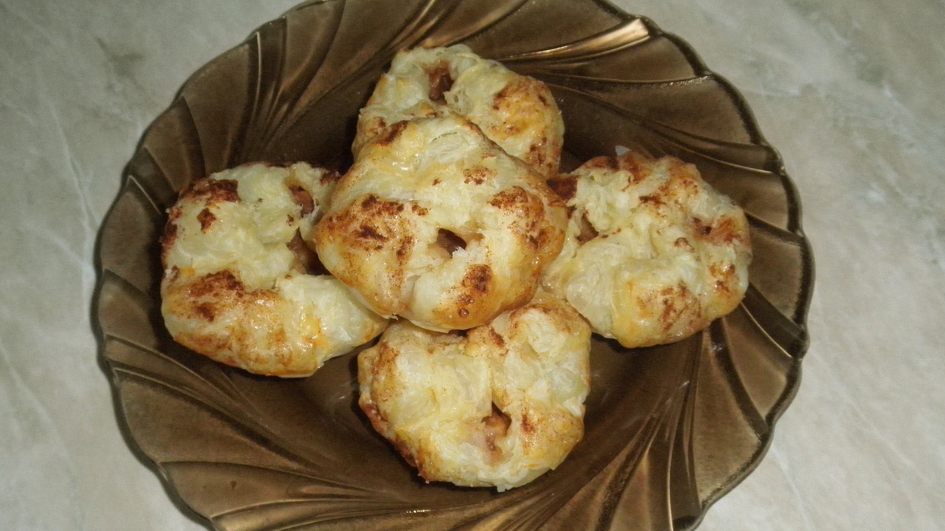 Jablka a listové těsto můžeme využít i jinak než k přípravě štrúdlu. Čtverce listového těsta naplníme dušenými jablíčky ochucenými skořicí a medem, které pak uzavřeme do tvaru měšce. Upečené dozlatova jsou zajímavým dezertem.