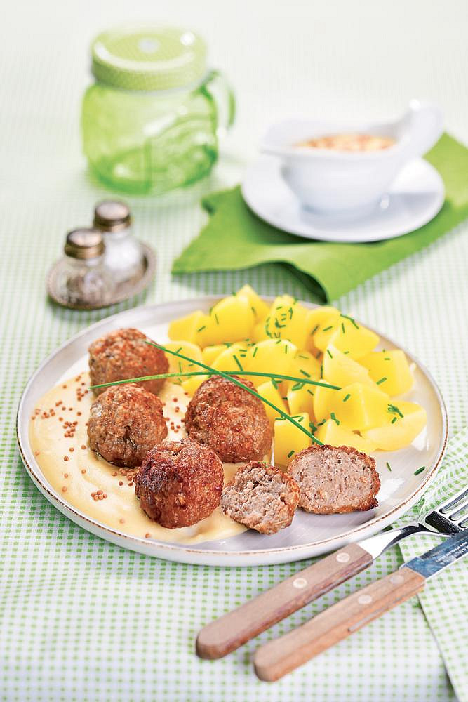 Masové kuličky s hořčičnou omáčkou
