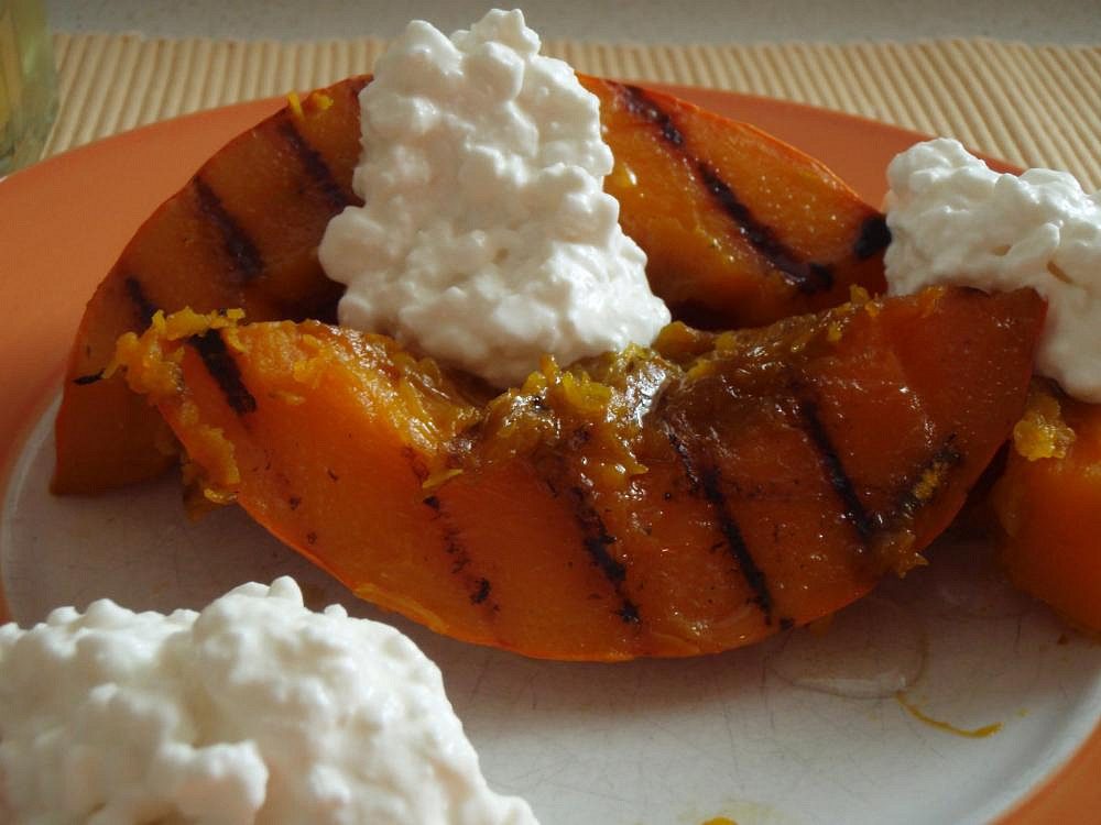 Grilovaná dýně s cottage sýrem je velice jednoduchý, ale výtečný pokrm, plný podzimních chutí. Ogrilovaná dýně získá jemně oříškové aroma, které skvěle ladí s jemným sýrem a kapkou ořechového oleje.