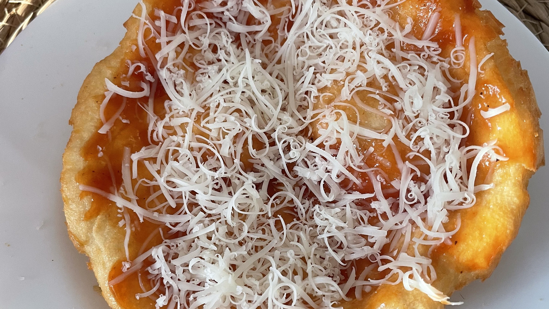 Krok 9: Hotové langoše potřeme česnekem, kečupem a posypeme strouhaným sýrem.
