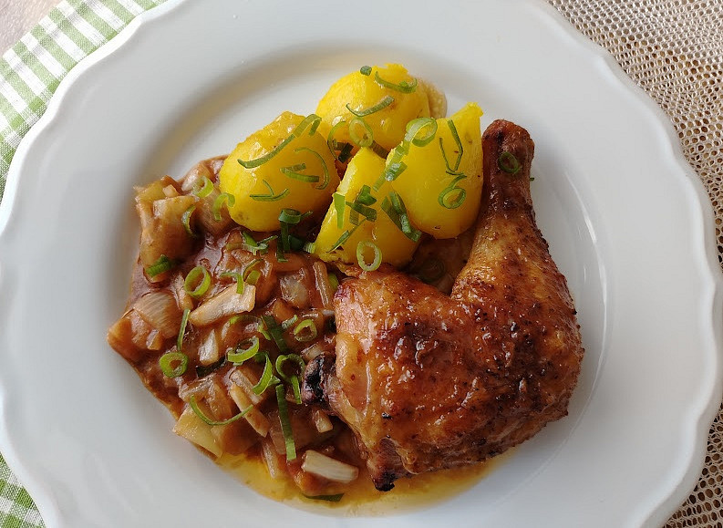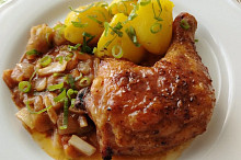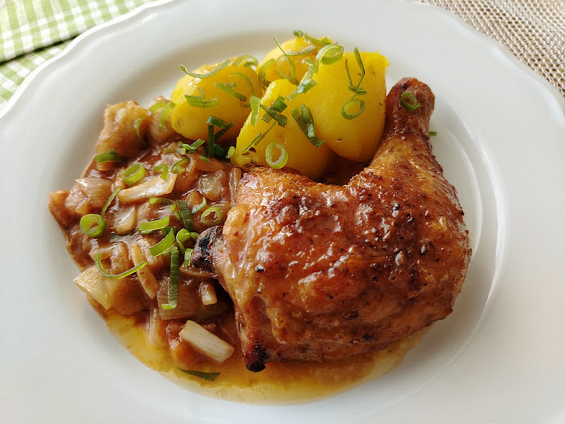Kuřecí čtvrtky na zelenině z horkovzdušné fritézy