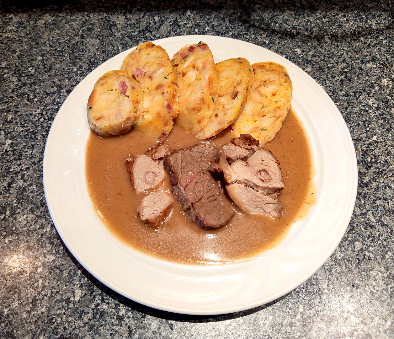 Potěšte svou rodinu poctivým obědem v podobě měkkého pečeného masa s cibulovou omáčkou zjemněnou smetanou. Maso prošpikujeme, zatáhneme na pánvi a poté pečeme na restované cibuli společně s kořením doměkka.