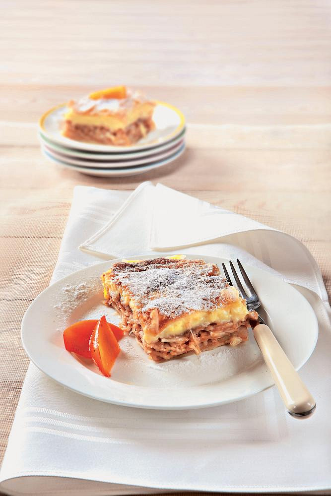 Každého milovníka sladkých moučníků potěší tento výtečný jablečný koláč. Křehký koláč, skládající se ze dvou vrstev listového těsta, mezi kterými najdeme náplň z jablíček a pudinku, krásně voní po skořici a zpříjemní tak celý den.