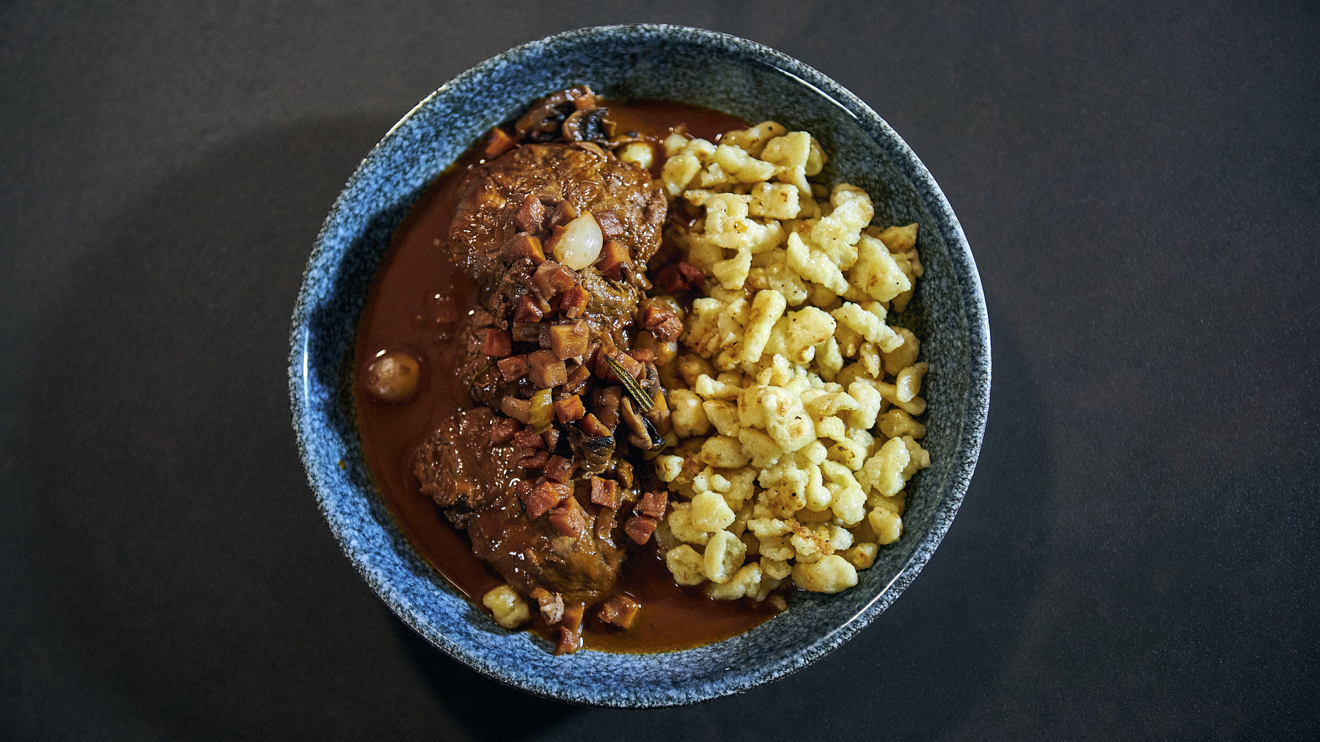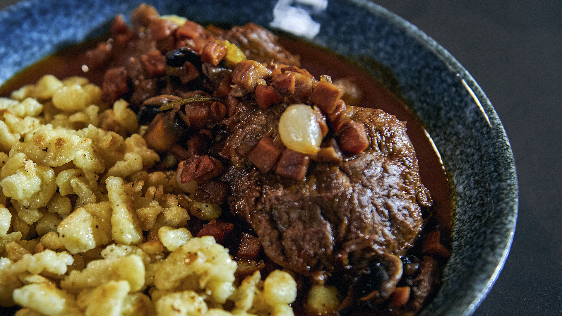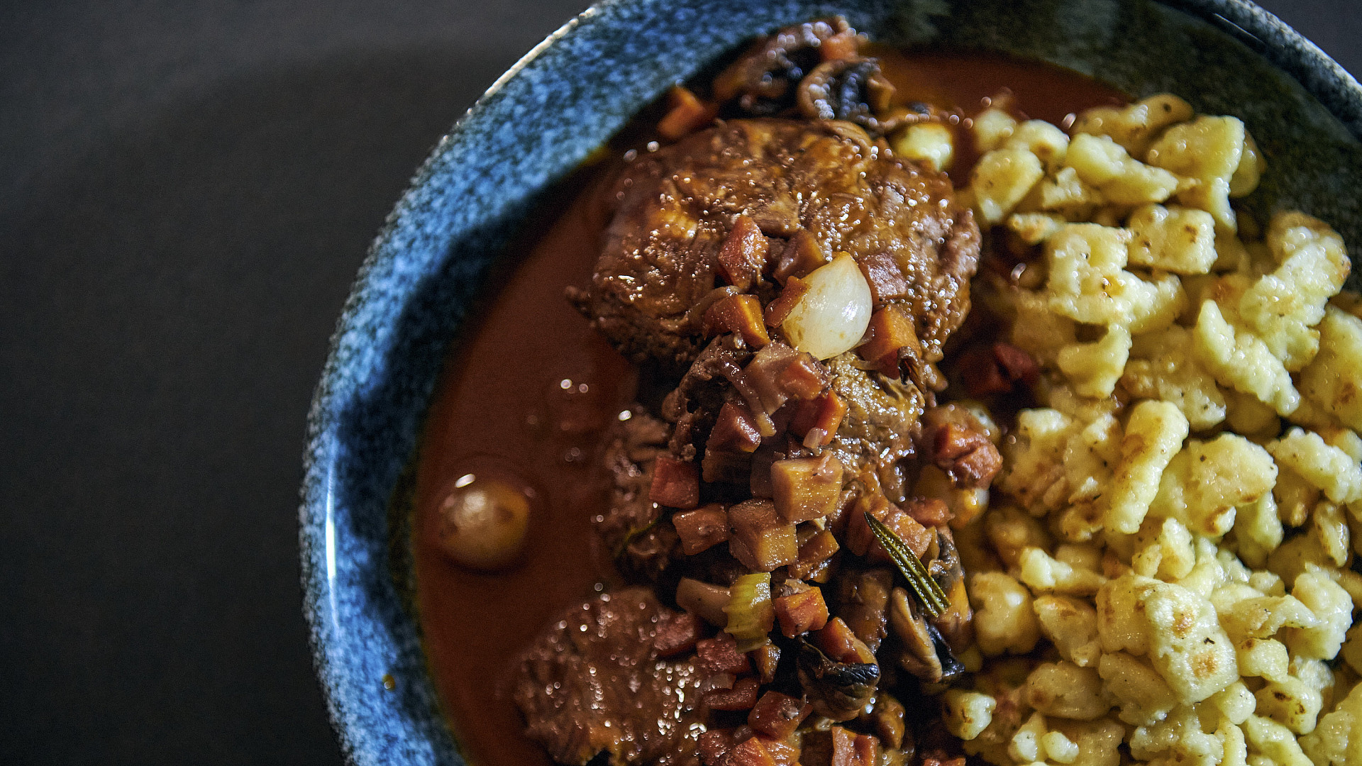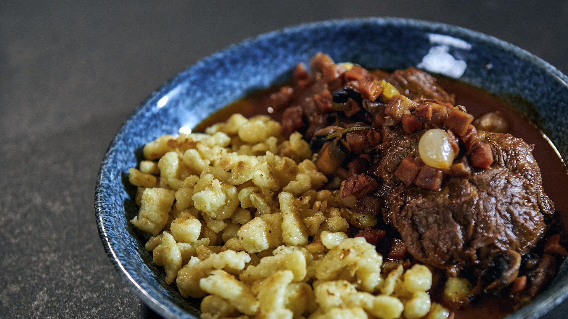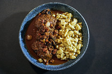 Domů - Recepty - Omáčka na červeném víně s vepřovými líčky podle Petra Hajného