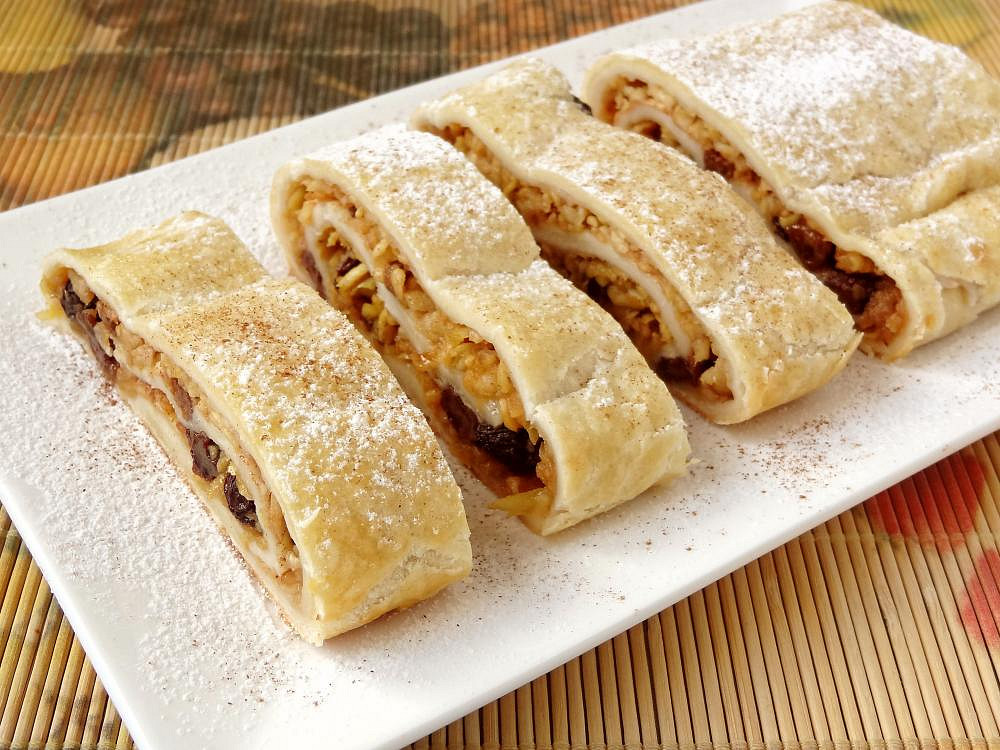 Jablečný závin je snad všemi oblíbená pochoutka, která provoní celý dům sladkou vůní skořice a jablek. Kombinace šťavnatých jablek, rozinek a ořechů v křehkém těstě z másla a jogurtu vytváří lahodný dezert ideální ke kávě či čaji.