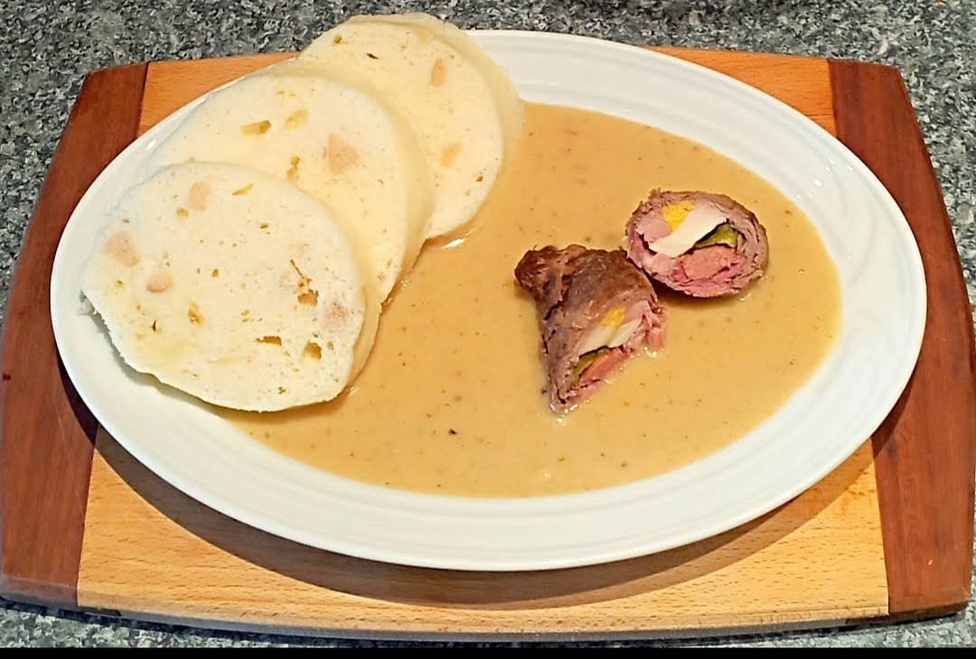 Španělský ptáček s okurkovo-slaninovou omáčkou