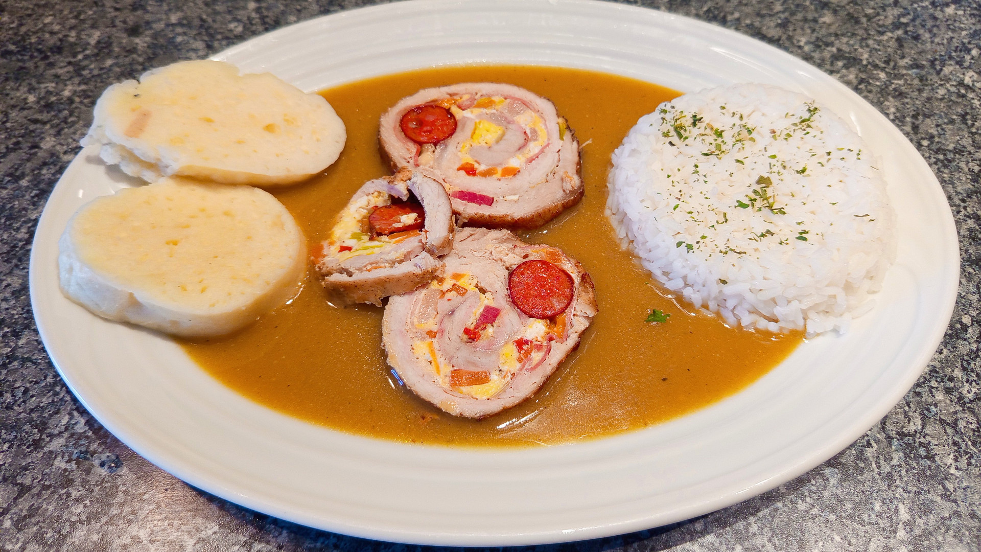 Vepřová roláda s mrkvovo-cibulovou omáčkou