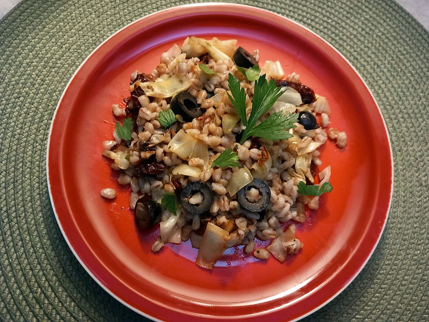 Nedokážete si představit spojení krup, sušených rajčat, oliv a zelí? Tato kombinace rustikálního českého základu s lehkým středomořským nádechem vás překvapí. Je to ideální volba pro lehký oběd či večeři plnou vlákniny a výrazných chutí.