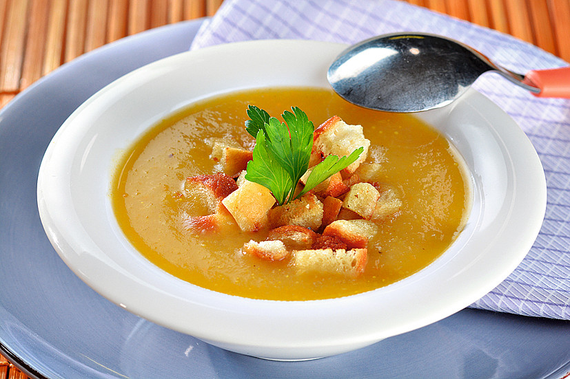 Zeleninový krém ze strouhané kořenové zeleniny potěší svou jemnou chutí. Mrkev, celer, petržel a brambory se vaří doměkka, pak rozmixují dohladka a vznikne lahodná, sytá polévka, kterou skvěle doplní plátky opečené bagety.