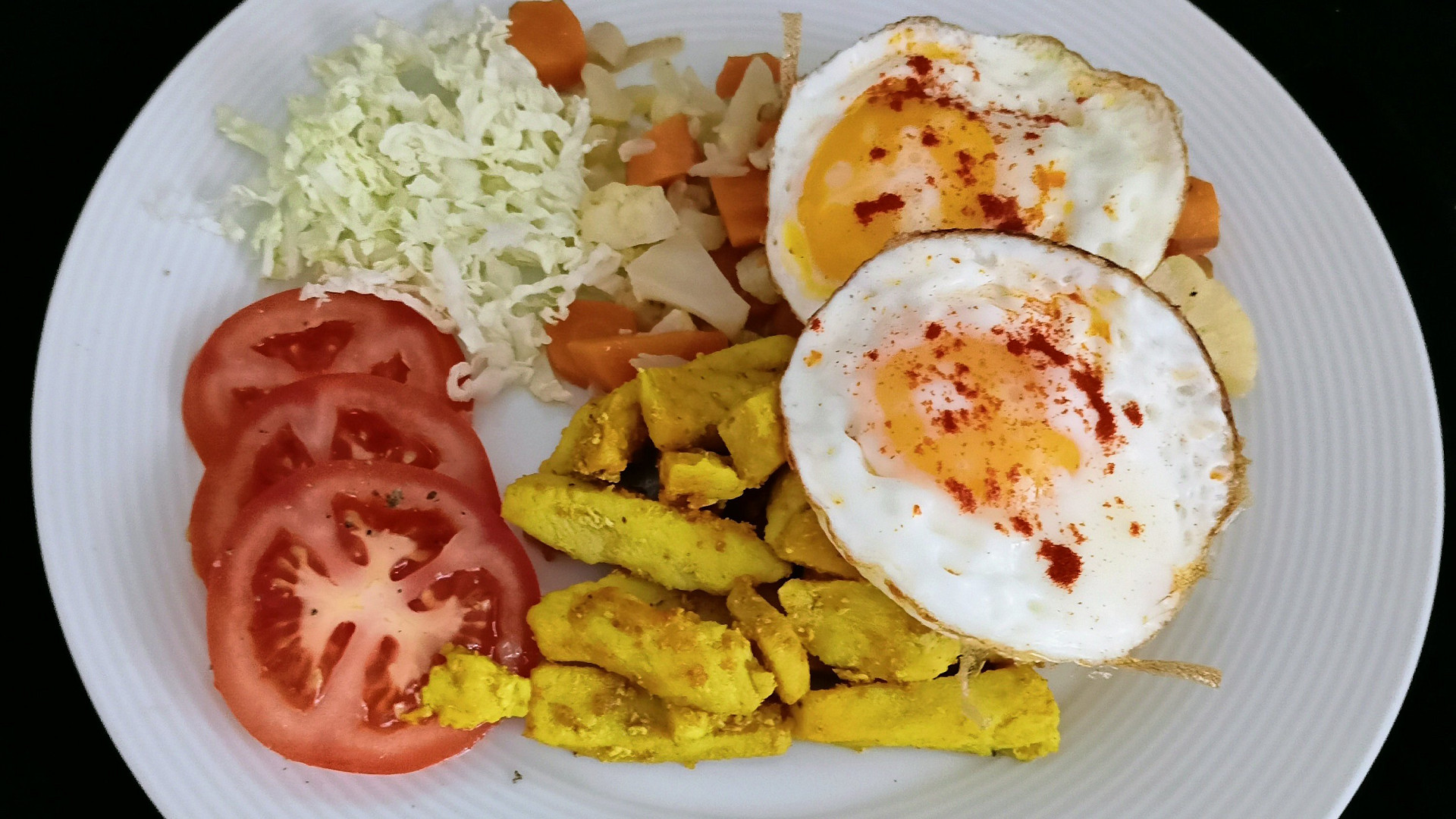 Šťavnaté kuřecí maso na kari, dozlatova upečená mrkev s květákem - to vše připravíte snadno v horkovzdušné fritéze. Tento diabetický oběd potěší chutí, nízkým obsahem tuku a rychlou přípravou bez zbytečného oleje.