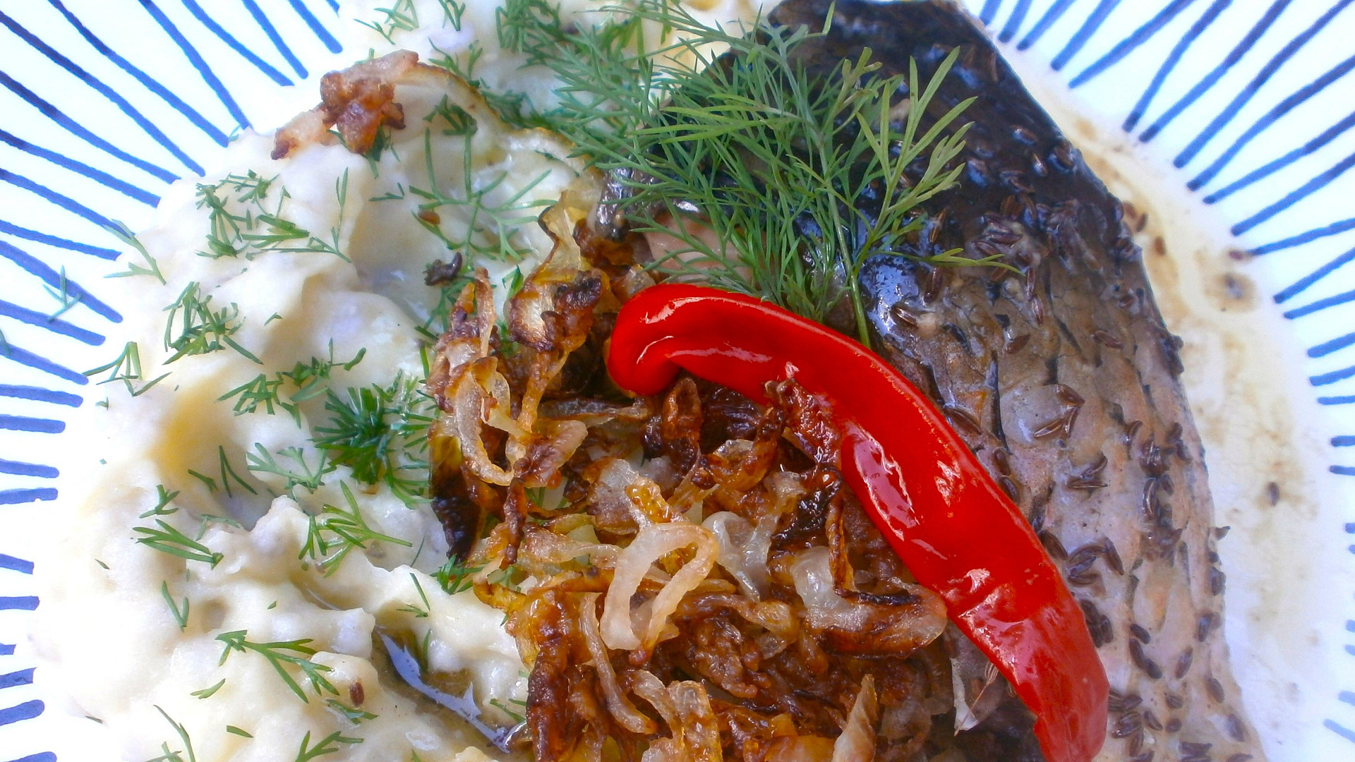 Kapr pečený na kmíně s nastavovanou kaší
