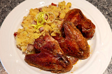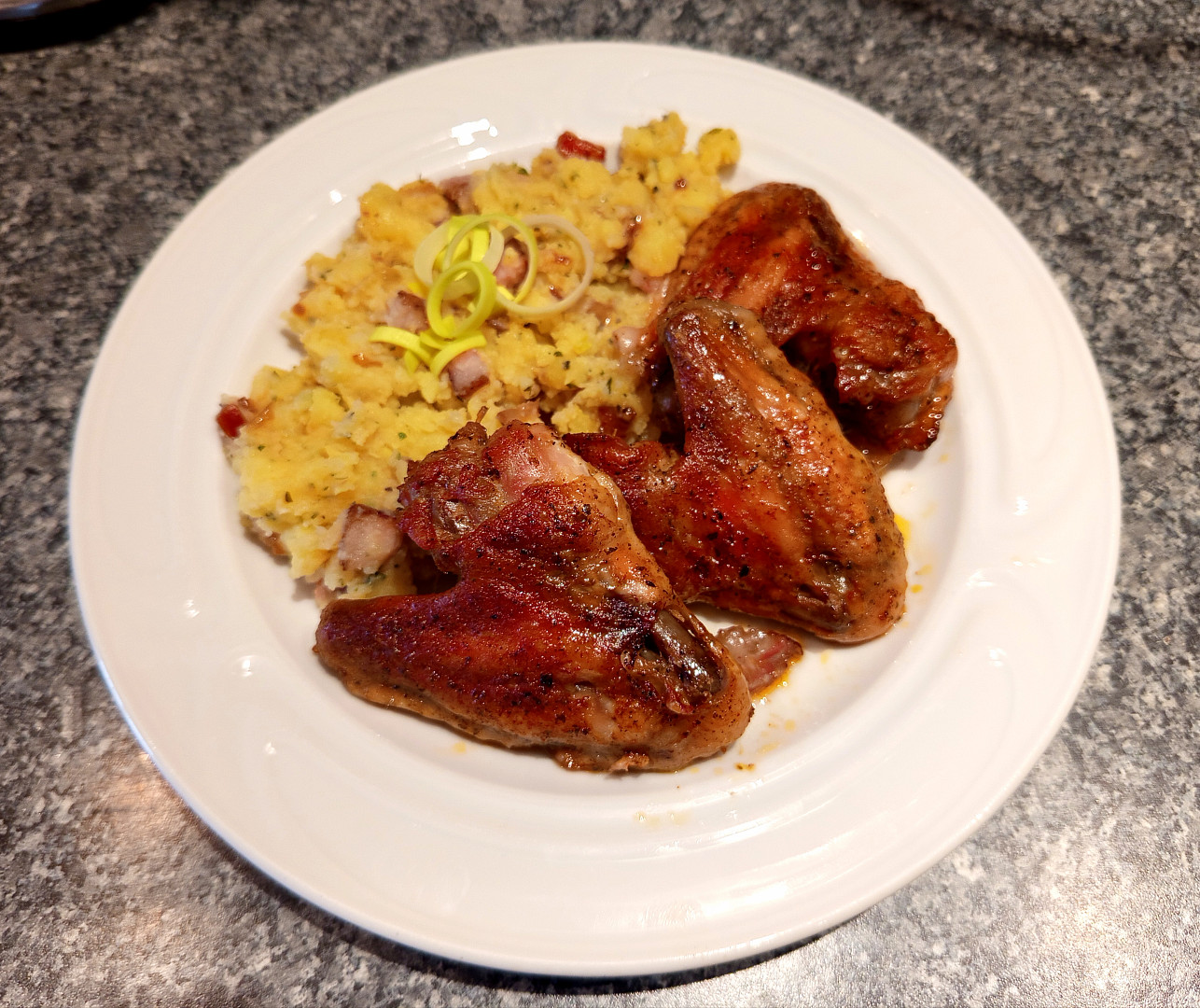 Pečená křídla a šťouchačky se slaninou