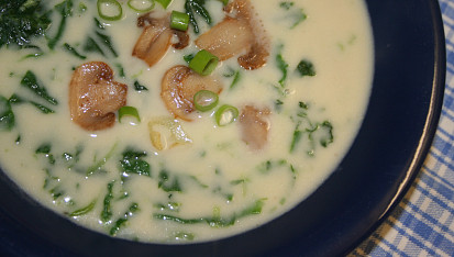 špenátová polévka ze žampiony,