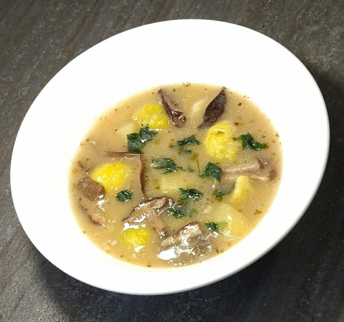 Bramborová polévka s růžičkovou kapustou a lesními houbami