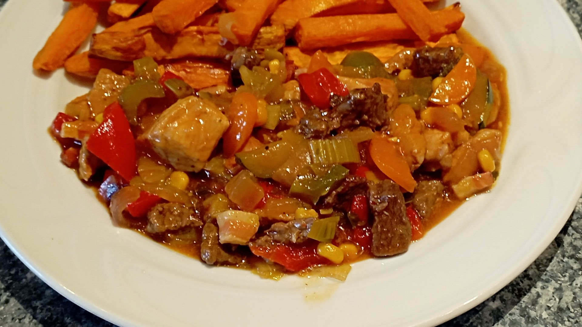 Rychlá a nenáročná masová směs z kuřecích prsou a kousků zeleniny. Orestované maso a zeleninu dochucuje sladký med a pikantní hořčice. Ideální pokrm na dny, kdy není času nazbyt a potřebujete dobře uvařit.