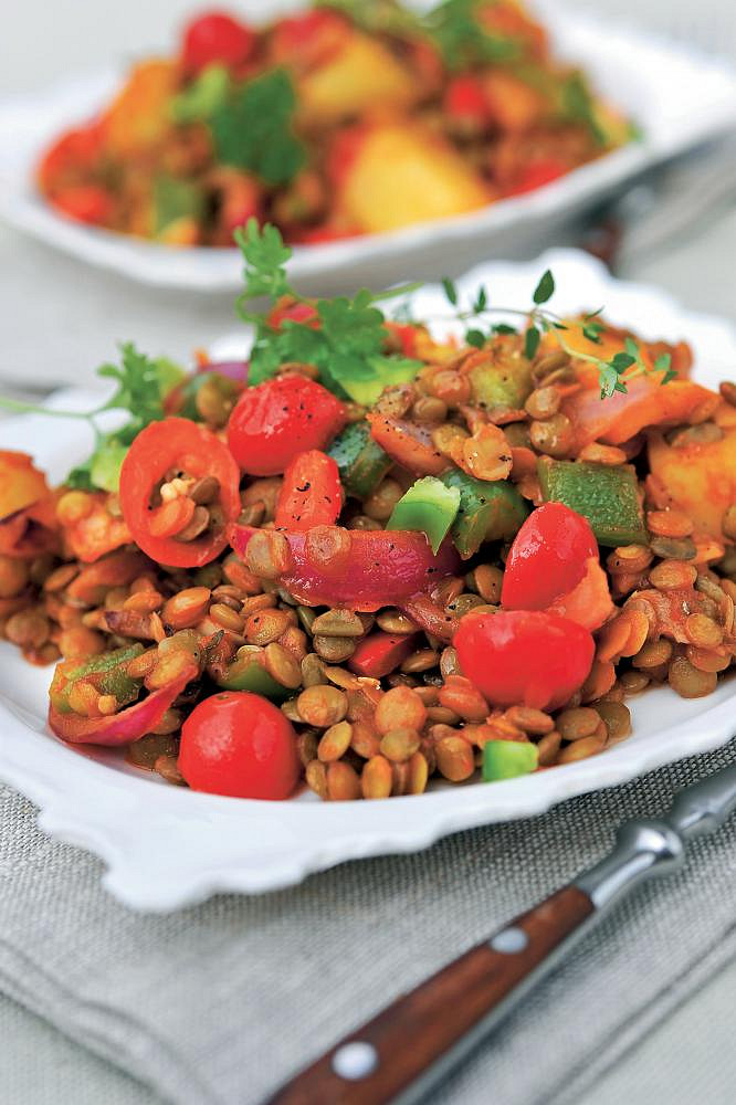 Sytá čočka se zeleninou je skvělý tip na rychlý a výživný oběd. Kombinace zelené čočky, barevných paprik, rajčat a brambor vytváří plnohodnotné jídlo, které zasytí, krásně voní a díky feferonce je příjemně pikantní.