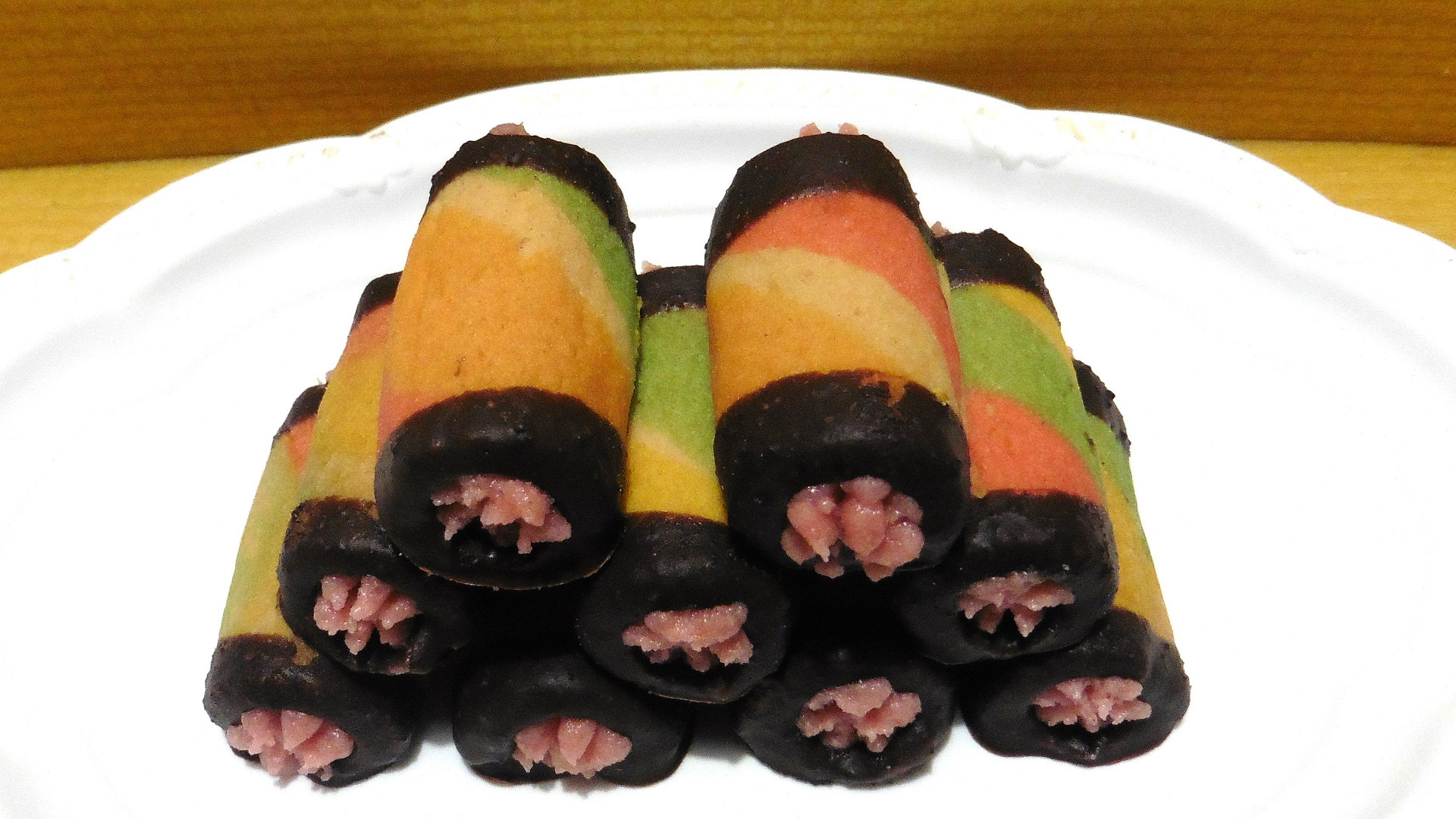 Veselé a barevné trubičky z lineckého těsta, plněné máslovým krémem, se stanou ozdobou každého svátečního stolu. Tajemství přípravy těsta spočívá v obarvení částí těsta gelovými potravinářskými barvami a pak následném společném vyválení.