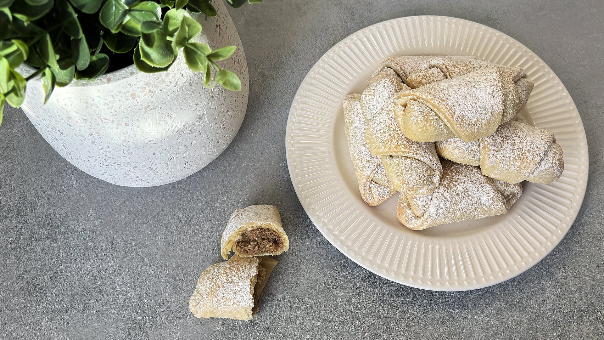 Křehké svatomartinské rohlíčky z máslového těsta plníme ořechovou náplní s kapkou rumu. Po upečení je potíráme máslem, díky čemuž zůstanou měkké a voňavé. Skvěle se hodí ke kávě i jako tradiční svatomartinská sladkost.