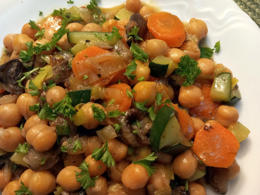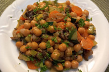 Domů - Recepty - Cizrna s dušenými houbami a zeleninou