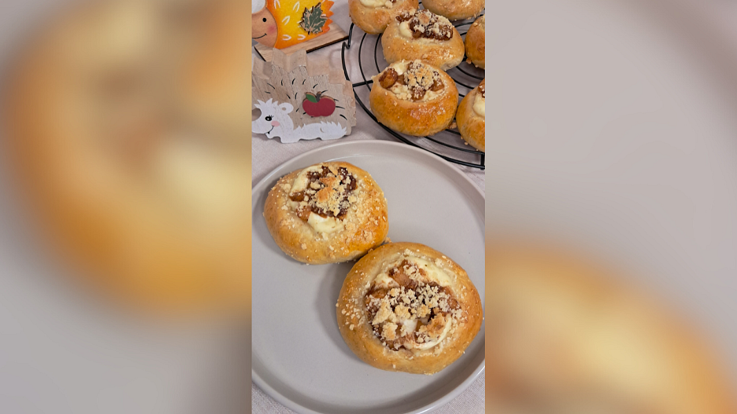 Kynuté plněné koláčky s drobenkou potěší snad každého. Nadýchané kynuté těsto vytvarujeme do bochánků s důlky, které naplníme lahodnou tvarohovou náplní. Tu doplní dušená jablíčka se skořicí a máslová drobenka s medem.