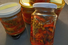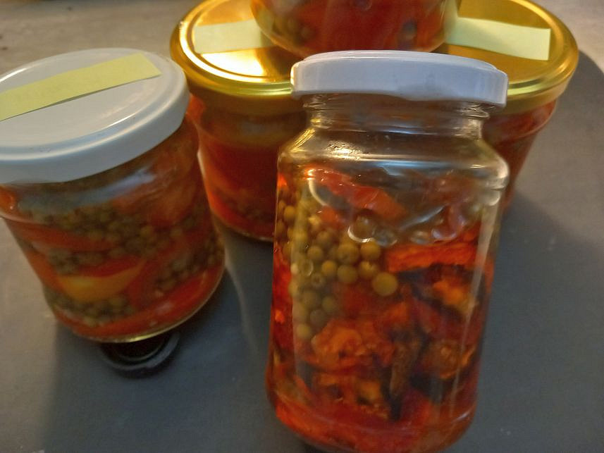 Sušená rajčata naložená v oleji se zeleným pepřem