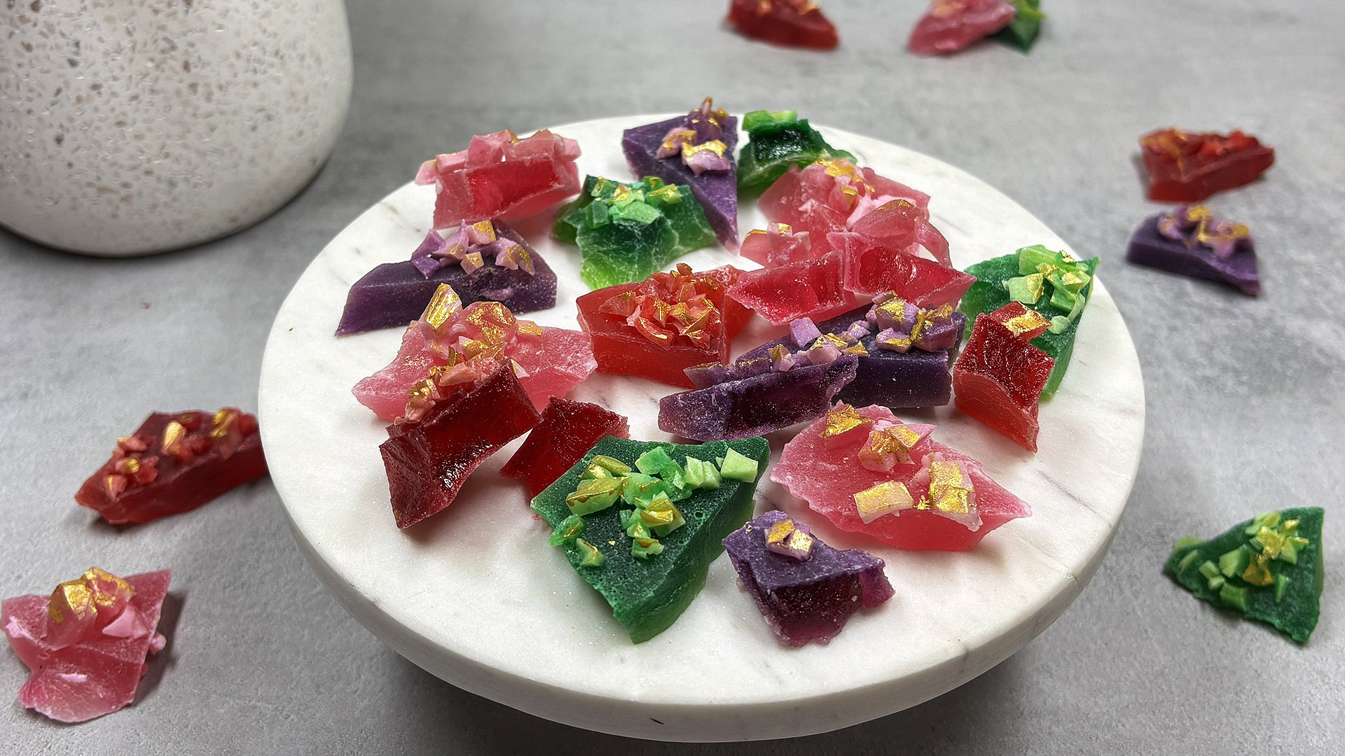 Už jste ochutnali jedlé cukrové krystaly z agaru, které po několika dnech na vzduchu krásně křupnou, zatímco uvnitř zůstávají měkké? Mají příjemně kyselkavou chuť a skvěle se hodí jako jedlá dekorace na dorty, cupcaky i moderní dezerty.