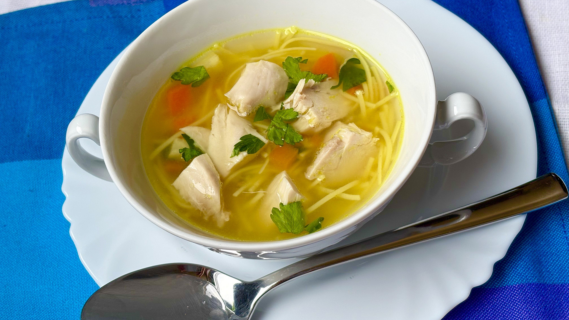 Poctivá slepičí polévka z pomalého hrnce přijde k chuti v chladných dnech. Dlouhé vaření dodá vývaru sílu i bohatou chuť. Talíř této horké polévky pomůže v boji proti nachlazení. Zázvor dodá polévce lehce pikantní nádech.