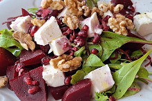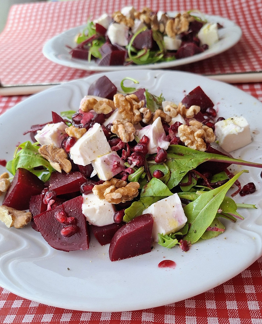 Lehký salát z červené řepy s mozzarellou a vlašskými ořechy