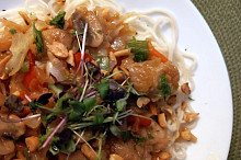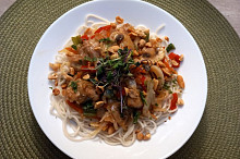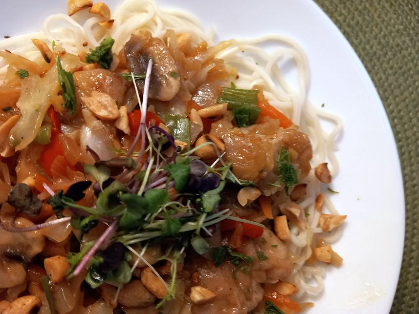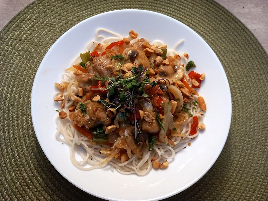 Kuřecí kousky v zelenině s nudlemi v asijském stylu