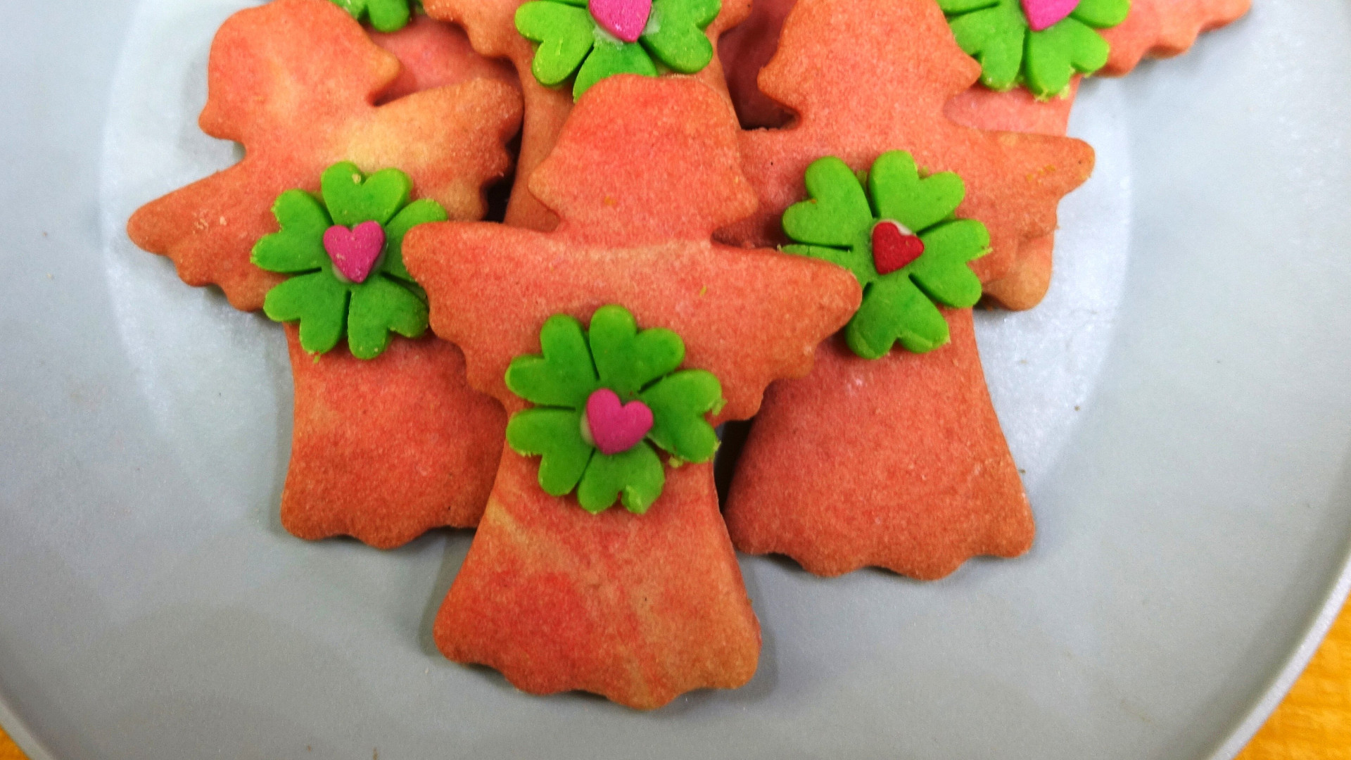 Anděl patří mezi symboly, které nesmí o Vánocích chybět. Připravte barevné linecké těsto, ze kterého vykrájíte tvary andílka s čtyřlístkem pro štěstí a srdíčkem jako symbol lásky. Darovaného potěší na oko, i na chuti.