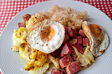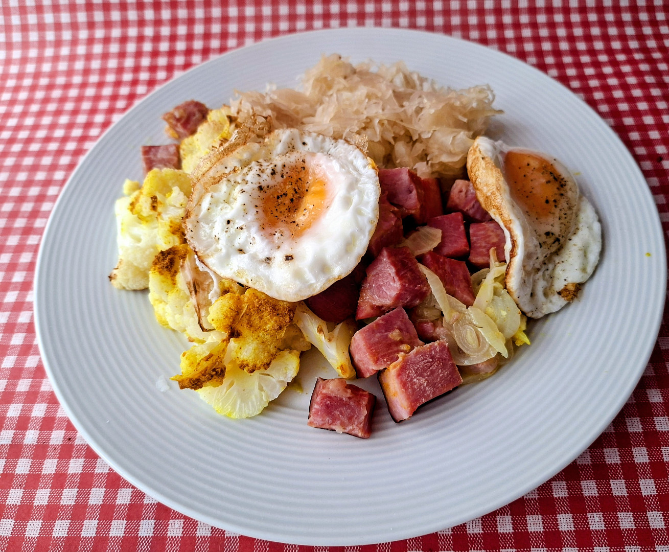 Pečená uzená krkovice s květákem a salátem z kysaného zelí