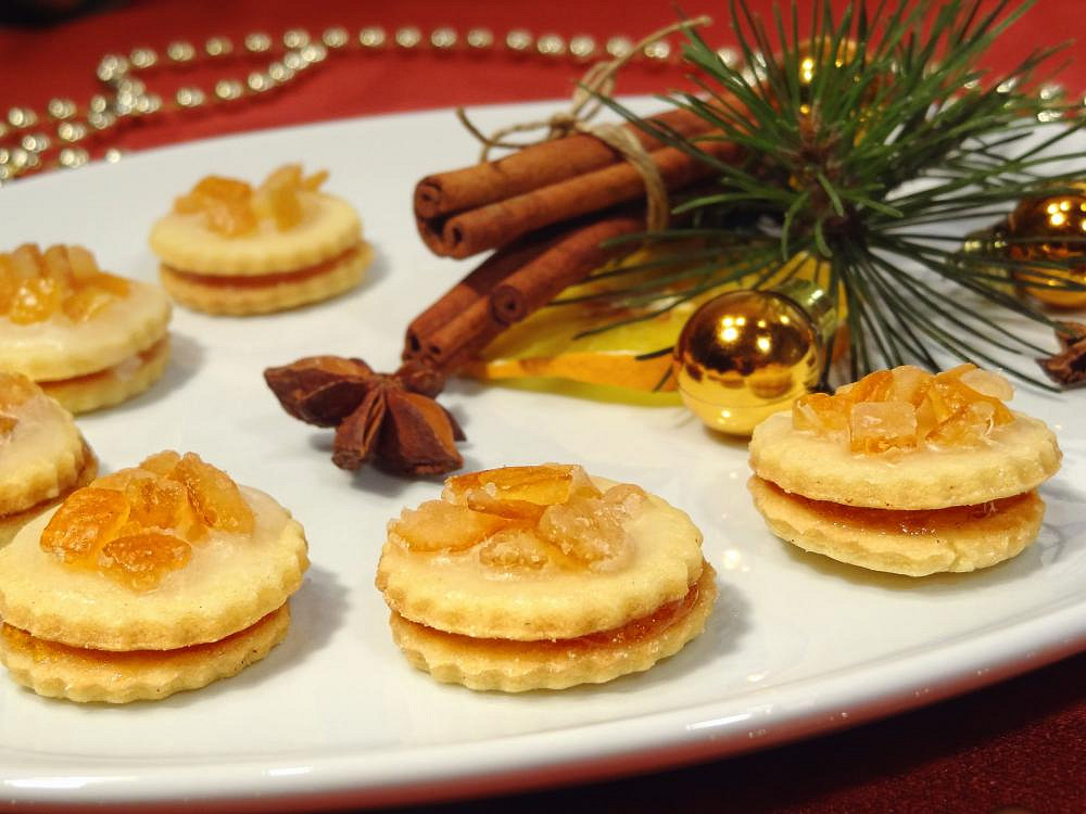 Inspirací na vánoční cukroví není nikdy dost. Pomerančové linecké, slepené marmeládou a ozdobené citronovou polevou a kandovanou pomerančovou kůrou, zaujmou všechny vaše strávníky nejen svým vzhledem, ale také báječnou chutí.