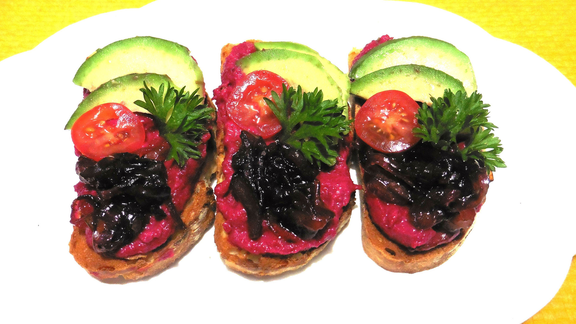 Chlebíčky, které upoutají na první pohled. Pečená červená řepa jim dodává výraznou barvu, karamelizovaná medová cibulka zase neobyčejnou vůni, a s plátkem avokáda a cherry rajčátkem potěší nejen chuťové pohárky, ale i oči všech u stolu.
