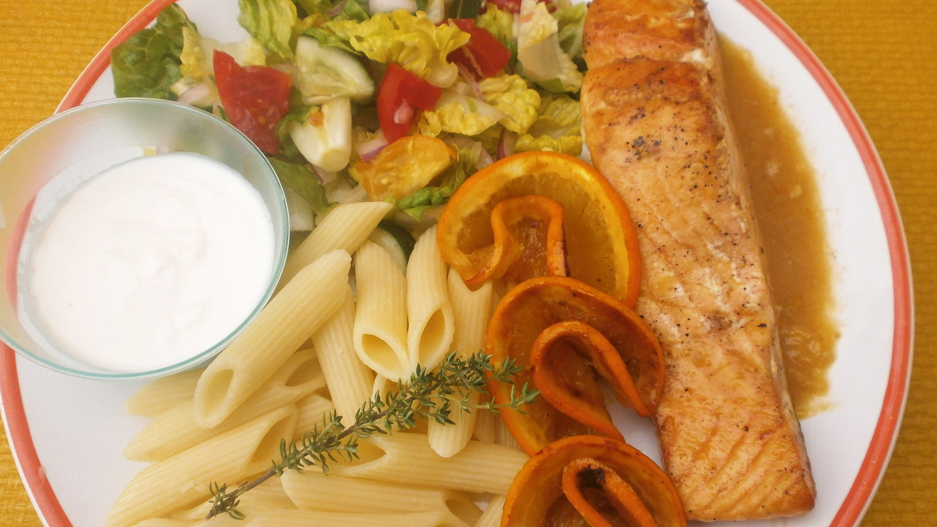Snadná a rychlá úprava filetu z lososa se hodí vždy, když chcete mít po ruce bleskovou večeři. Stačí si vzpomenout den předem a lososa namarinovat. Pak už zbývá jen opéct na pánvi a dodělat výpek vonící po pomerančích.