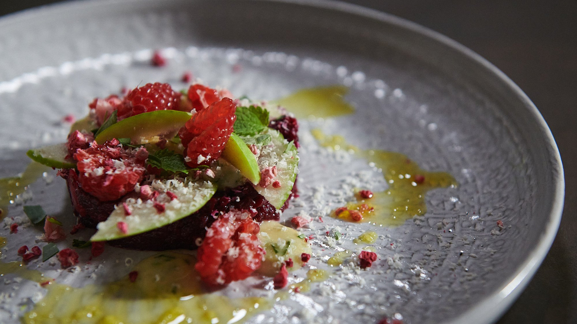 Chutným předkrmem slavnostního rodinného oběda se může stát netradiční tatarský biftek, připravený z červené řepy. Připravte si ho podle známého českého kuchaře Honzy Punčocháře. Na závěr ozdobte plátky jablka, překrájenými čerstvými malinami a strouhanými, praženými mandlemi.